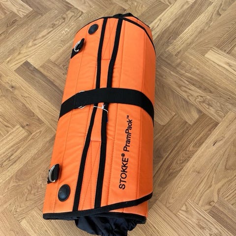 Stokke prampack / rejsetaske til barnevogn/klapvogn sælges. Den er i fin stand, selv om den har lidt slidtage efter en del rejser. Det er ikke noget, der er af betydning, om den ser stadig ud som ny indeni, hvor vognen skal beskyttes.