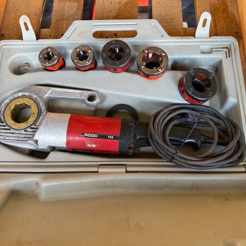 Rothenberger Supertronic 2000 elektrisk gevindskærer til udvendigt rørgevind på stålrør.