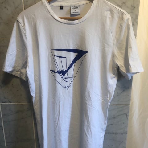 1 hvid t-shirt, 2 sorte shorts og 1 brunlig/grålig kortærmet sweatshirt.