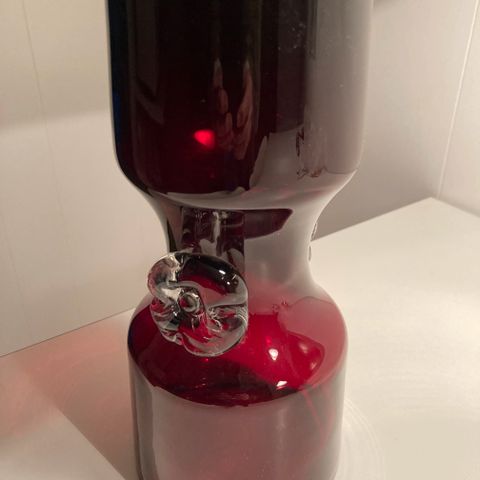 Rubinrød glas vase, dråbeformet.
