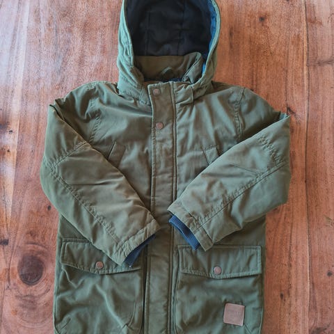 Fed armygrøn parkacoat med en masse lommer og detaljer.