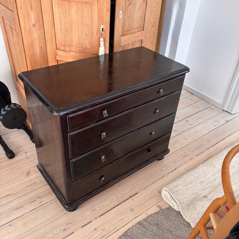 Super fin kommode. Skufferne kører super. Der er brugsspor på toppen. Se billede men ellers i god stand