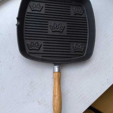 Flot grillpande fra Cook&Baker i støbejern med emaljebelægning, bund 25 x 25 cm. Nypris kr. 300. Kan afhentes foran Lindevang Metrostation, 2000 Frederiksberg