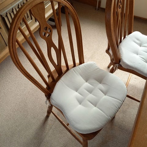 Massivt egetræ, sæder bære præg af kradse mærker.