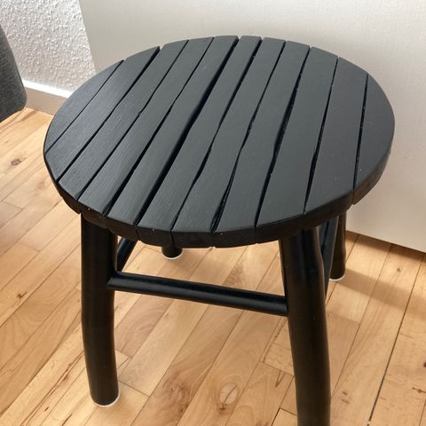 Skammel med metalben og stofsæde i mørkegrå. Som ny uden brugsspor.