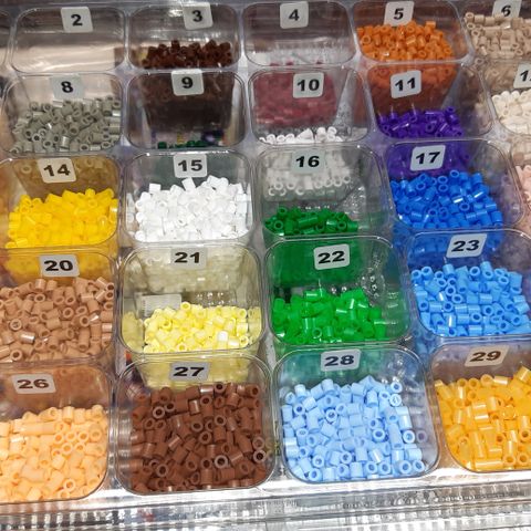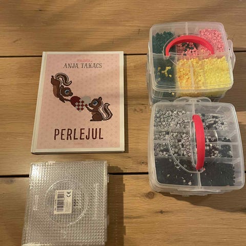 Rigtig mange perler, der er så gode som nye. Alt på billedet medfølger inkl. opbevaringskassen.