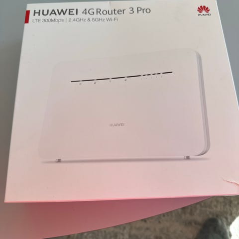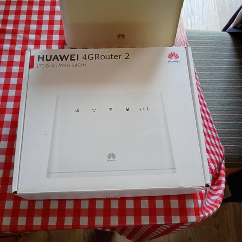 Huawei 4G Router 2 router med LTE Cat4 og Wi-Fi 2.4 GHz. Enhedens funktioner inkluderer trådløs internetforbindelse via 4G-netværk og mulighed for kablet tilslutning. Routeren er hvid og leveres med strømforsyning og netværkskabel.