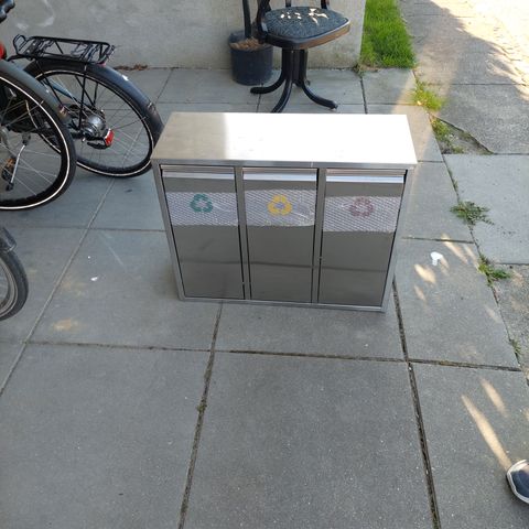Sorteringsmoduler, der kan placeres på gulvet eller vægmonteres. Mærket med farvekodede symboler for genanvendelse. Med udtagelige inderbeholdere med håndtag.