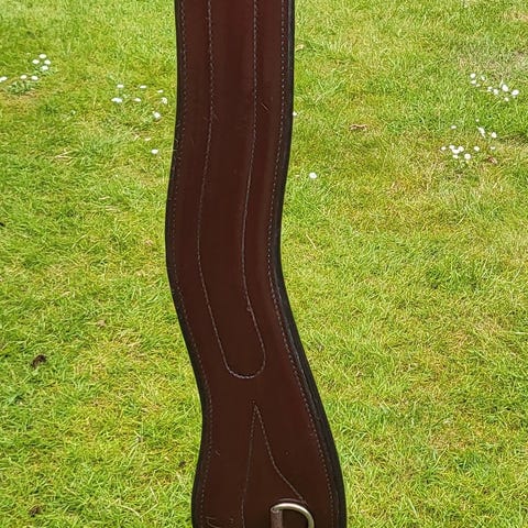 Stubben sort læder hoppesgjord med pelsforing. Hoppesgjorden har dobbelte spænder og metalbeslag for justering og fastgørelse. Designet til at give støtte og komfort under ridning.