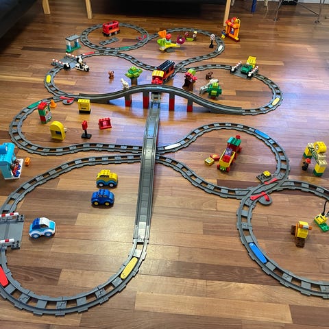 På de store fotos er taget på lokomotivet sort. I virkeligheden er det gult, ligesom det originale lego-duplo sæt.
