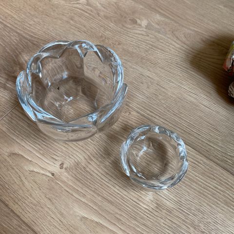 Iittala skål fremstillet i røget glas med bølget form. 7,5 cm i højden.