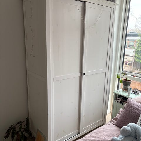 Skabet er vist fra Jysk, men vi overtog det fra tidligere ejer, så det vides ikke med sikkerhed. Det har brugsspor (se billeder), men fungerer fint. Gives væk, da vi ikke skal bruge det længere, men det er for godt til at smide ud.