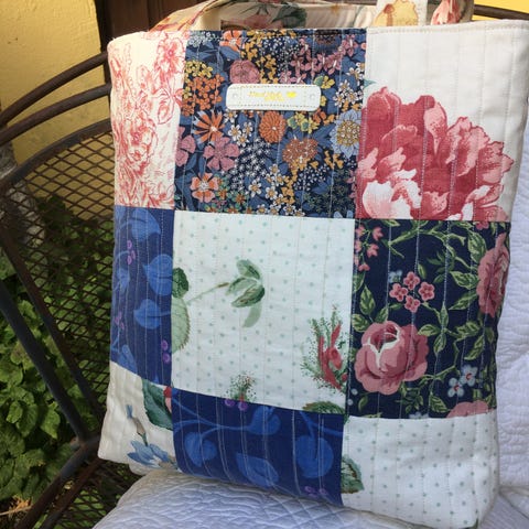 Lille taske & pung i stof. Lang hæklet sort skulder-snor. Lukkes med lille perle foran.