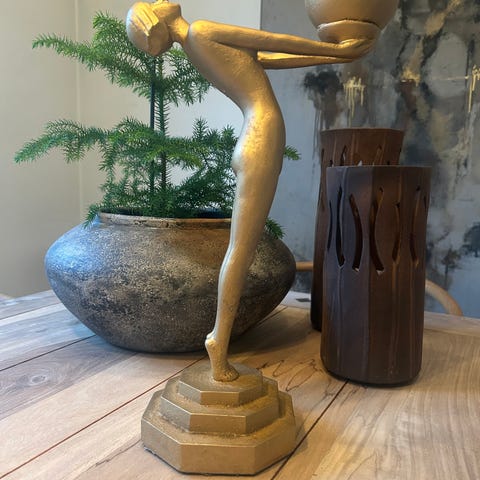 20 cm guldfarvet skulptur af siddende kvinde, dame pige figur