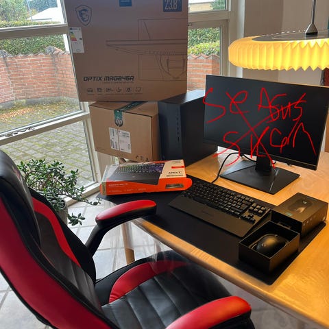 Den forreste er en Samsung color display unit skærm, som har en buet skræm. Skærmen er en 144hz.