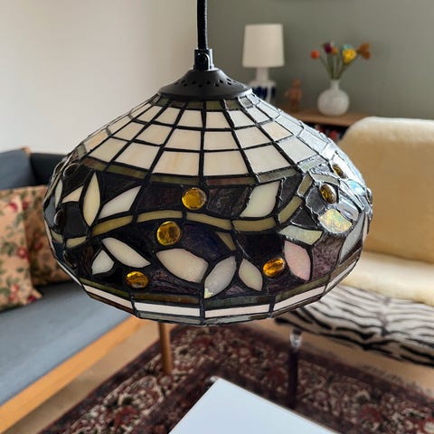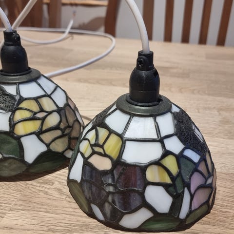 Smuk Tiffany pendel i flot stand. Giver et varmt og stemningsfuldt lys. Perfekt over spisebordet, i stuen, i entreen.