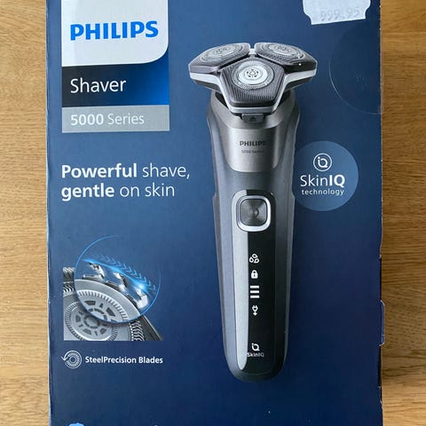 I sommers fik den nye skæreknive. De holder i 2 år, og nye (3 stk.) kan til den tid købes for omkring 150 kr. hos Philips. Den er selvfølgelig rengjort og klar til brug.