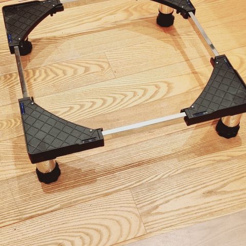 Vaskemaskinestativ : H:310mm, B:620 mm, D:560 mm. Egnet til tradtionelle vaskemaskiner og tørretumblere, max 200 kg ialt.