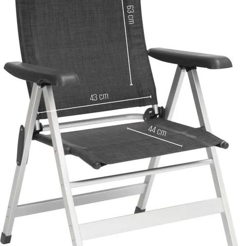 Stolen er nem at folde ud og sammen og kan pakkes kompakt for enkel opbevaring og transport – typisk leveret med en praktisk bæretaske. På trods af den lave vægt (ca. 4,4 kg) tilbyder den god komfort med et rummeligt sæde og buede armlæn og kan bære en belastning på op til ca. 125 kg.