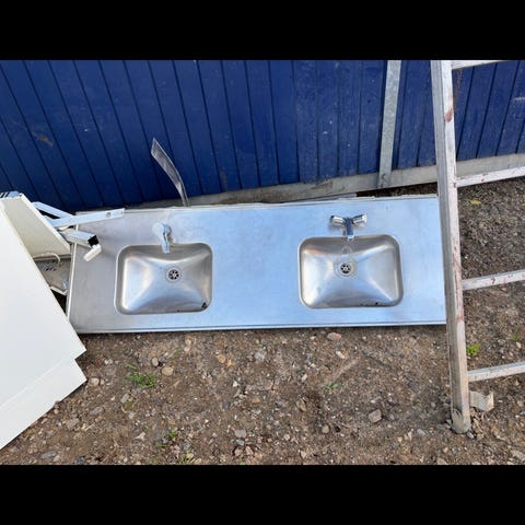 Bordplade i rustfri stål med indbygget dobbeltvask.