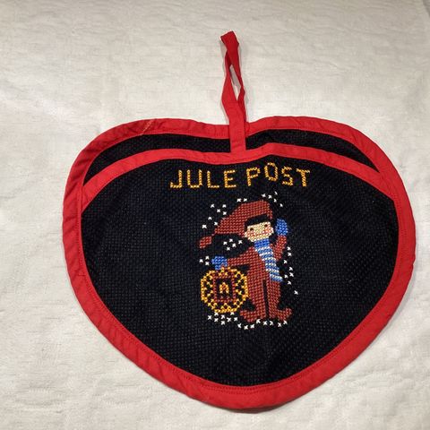 Håndlavet broderet ophæng, også fint lavet bagpå. Farven er ikke falmet øverst, det er blot fra lyset. Er i pæn stand, ganske lidt brug.