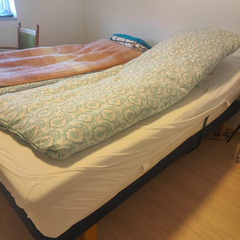 Velholdt elevationsseng fra Jensen inkl. topmadras. Mål 200x90x60. Kun brugt i kort tid.