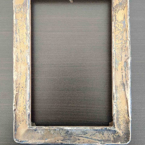 To rammer, måler begge 7x11 cm. Slebet glas. Skade på nedre hjørner på rammen med kugleformede ben.