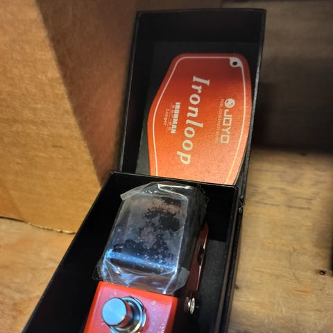 Joyo Compressor med kontrolknapper for sustain, level og attack. En kompakt pedal designet til at justere og kontrollere lydens dynamik.
