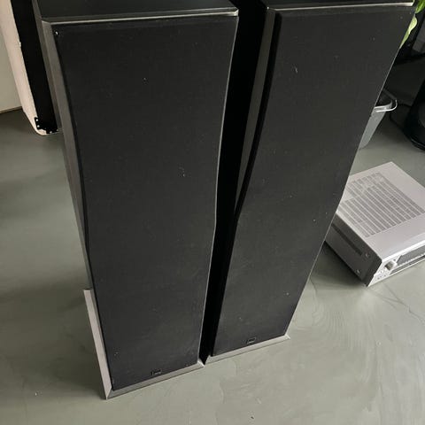 Setup’et består af DALI Helicon 800 som fronthøjttalere. De leverer en stor, detaljeret og meget musikalsk lyd med både kraft og finesse. Originale gitre er monteret, og serienumre forefindes. Den ene fronthøjttaler har et mindre kosmetisk hak på toppen, som tydeligt kan ses på billederne. Det har ingen betydning for lyd eller funktion, og resten står rigtig flot.