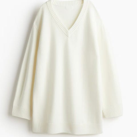 H&M sweater i størrelse XS til kvinder. Farven er hvid, og materialet er viskose. Sweateren har lange ærmer og en rund halsudskæring.