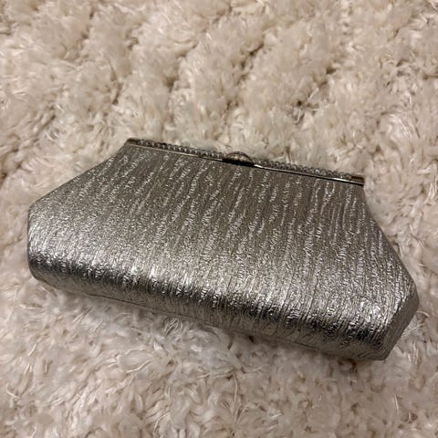 Sort aftentaske/clutch i satin med hank. Tasken er elegant og slank og måler ca 21x13 cm.