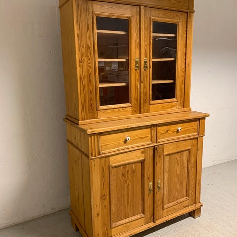 Super fint fyrretræs vitrineskab nymalet i lys grøn.