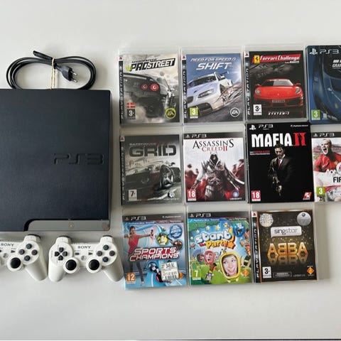 PlayStation3 slim model sælges samlet med masser af spil og tilbehør. Alt er i pæn stand og fungerer som det skal.