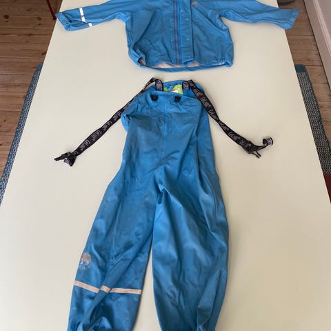 Villervalla Sorte regnbukser med seler i størrelse 74.