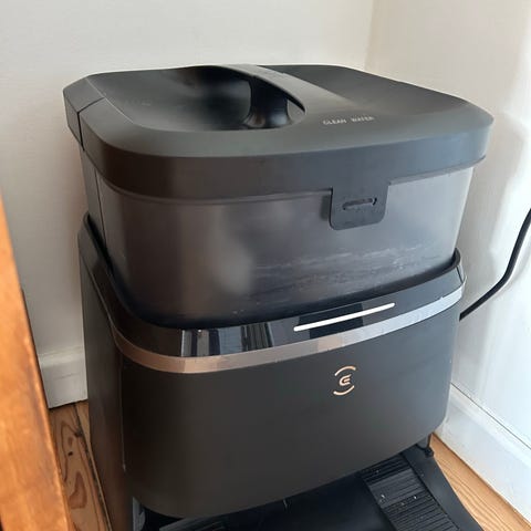 Enheden inkluderer en robotstøvsuger samt en dockingstation med integreret vandtank til gulvvask.