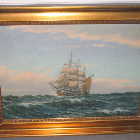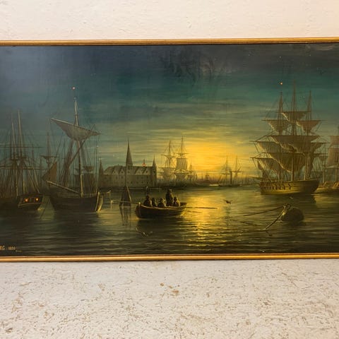 Maleri, motiv med skibe og Kronborg