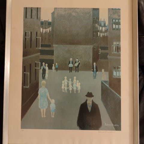 Litografi i farver fra 1953. Aften på Nørrebro.Signeret og nummereret 197/260