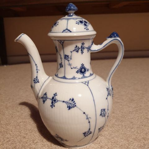 Smuk og klassisk Royal Copenhagen Riflet kaffekande (Plain), 1. sortering.