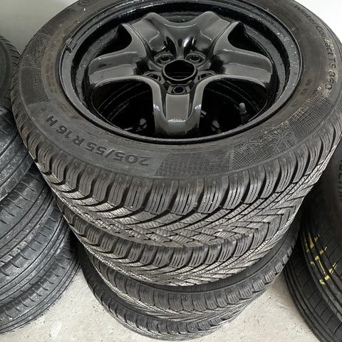 Gode vinterdæk på fælge. Har siddet på Opel Astra, men passer til mange modeller. 205/55/16 - ET37.