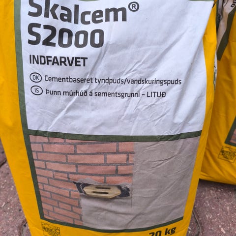 30 sække Skalflex Skalkem S2000 cementbaseret indfarvet vandafvisende pudse i 20 kg poser. Produktet anvendes til pudsning af facader og murværk og har egenskaber som vandafvisning og holdbarhed. Farven er indfarvet, og produktet er velegnet til udendørs brug.