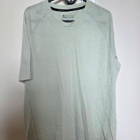 Adidas løbetrøje til mænd i størrelse L med blå og gule farver. Trøjen er designet til løb og har lange ærmer. Materialet er velegnet til sport og fysisk aktivitet.