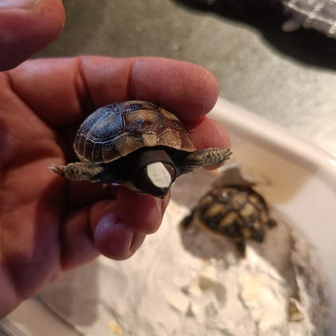 2 græske landskildpadder født i 2023, sælges kun samlet… Der medfølger næsten nyt bur, ny uva og una lampe, næsten fuld kalk og over halv fyldt vitamin blanding, hø blanding + næsten helt fuld kokosfiber til underlag. De har aldrig været i dvale.