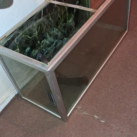 120 l akvarie. Tæt. Er tømt men ikke rengjort. Med skab og diverse udstyr til. For 100 kr mere kan diverse akvarie fisk købes med.