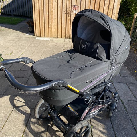 Købt brugt og efterfølgende tilkøbt nye hjul og regnslag.
