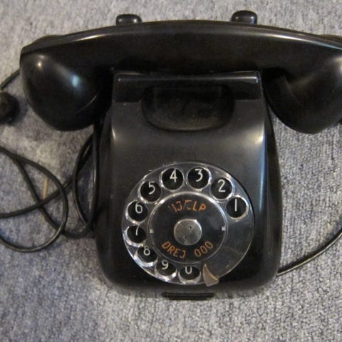 Bordtelefon, KTAS, Danmark 1 fra 1980'erne med trykknapper og ledning / stik