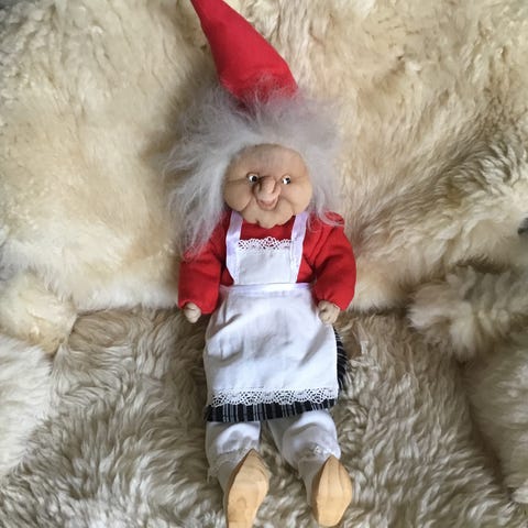 Et flot par strømpenisser med sivsko. Manden bærer en violin. De er 53 cm høje, hvor manden dog er lidt højere pga huen.