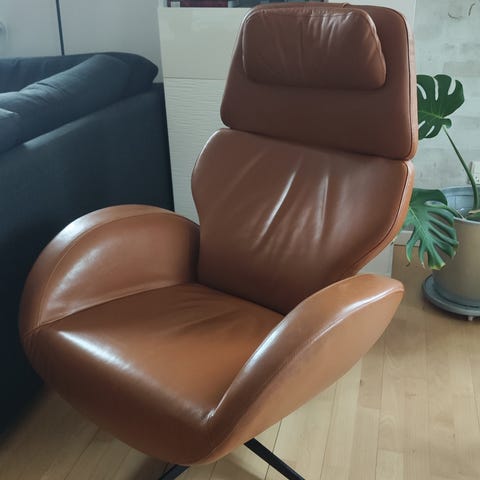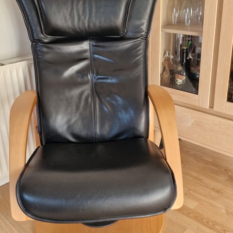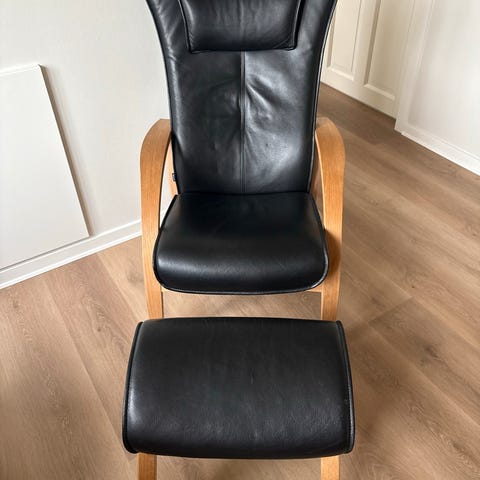 Brunstad Pax lounge drejestol i sort læder på sort metalstel