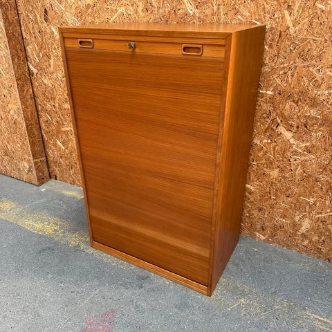 Meget flot arkivskab fra 1960erne i teaktræ. Jalousi med nøgle. Produceret hos Bjerringbro møbelfabrik.