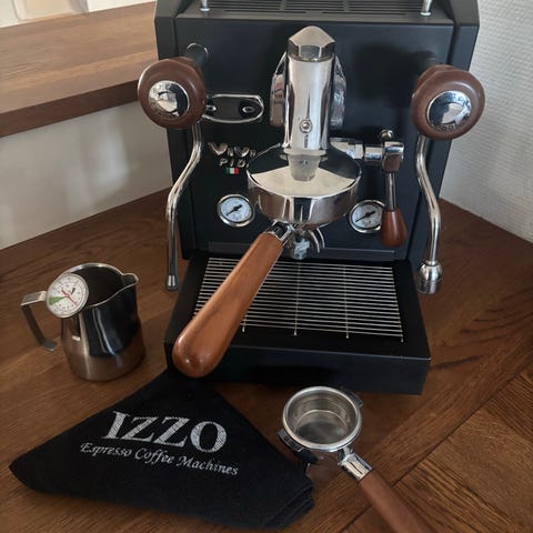 Sælger denne smukke Anza Coffee kaffe- / espressomaskine lavet i corian med messing og træ. Ekstremt stilfuld og alle kommenterer den når de er på besøg. Som ny, men små mærker på risten. Kan ikke helt undgås men ser pænt ud (patina). Jeg købte den med amerikansk stik og har sat adapter på (ses på billede) men jeg får ikke lavet kaffe derhjemme. Vær opmærksom på at maskinen er tung. Køb eller send et bud.