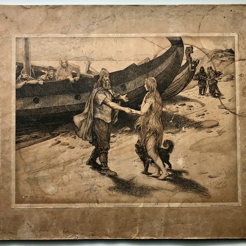 Foreningen af 3. December 1892, København 1918. Lille folio. 58 sider + 66 billedplancher + 56 plancher med opmålinger. Indbundet ubeskåret med orig. omslag i et smukt helbind af lysebrunt kalveskind. Diskret navn nederst på smudstitelbladet. * Et af 620 nummererede eksemplarer. Dansk Bogkunst 35. En af de 50 smukkeste danske bøger nogen sinde. ** Den autoritative arkitekturhistoriske fremstilling om dette henrivende romantiske anlæg ved Møns Klint.